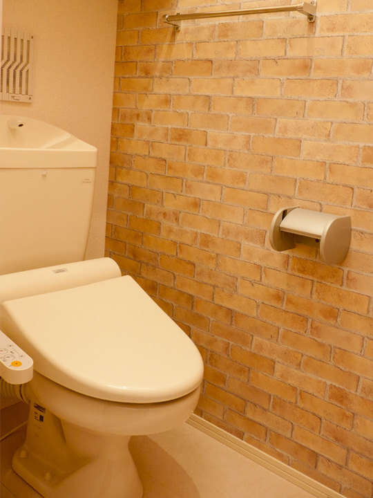 お洒落なレンガ調の壁紙で気持ちも落ち着きます。
